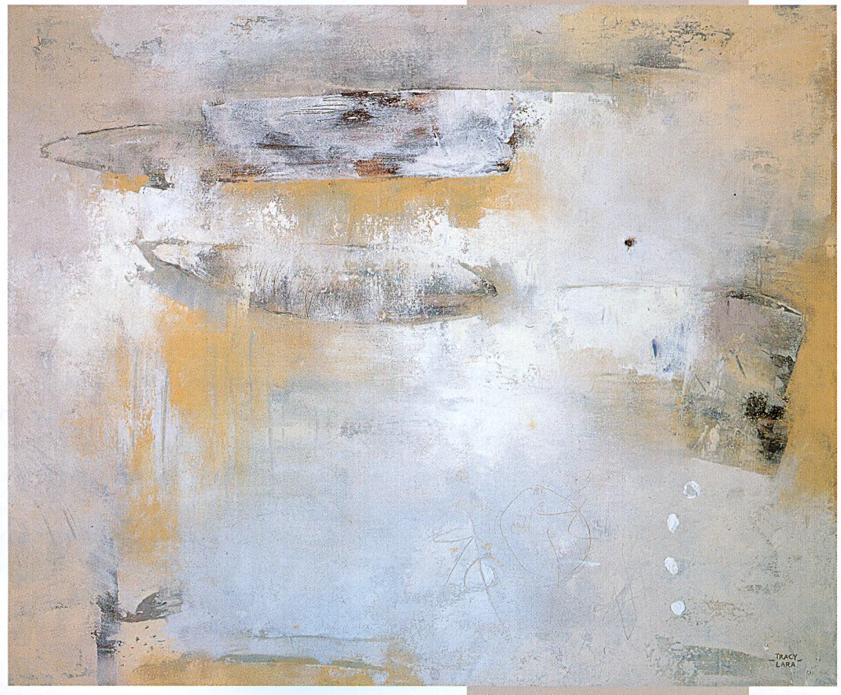 A través de sus obras, Tracy nos abre un mundo de posibilidades; sus blancos son un Tao en el silencio, y es un Oku en el camino. Su pintura es como un sutil desmayo de matices, de elementos translucidos que van más allá de la imagen. A través de su pincel, sensibiliza las formas simbólicas y los colores que ella recoge de sus sueños y transforma en poesía.